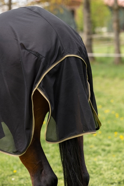 Velcrolukningerne ved hals og bryst muliggør individuel justering. Dækken er også UV-bestandig, så din hest er godt beskyttet selv på solrige dage.