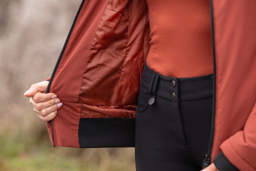 Covalliero-jakken kombinerer funktionalitet med elegant design. Takket være den aftagelige hætte tilbyder jakken optimal beskyttelse på regnvejrsdage både med og uden hjelm, og kombinerer dette med et feminint, sporty snit. Den er også åndbar med 3000 g/m²/24 timer og vandtæt med en vandsøjle på 10.000 mm.