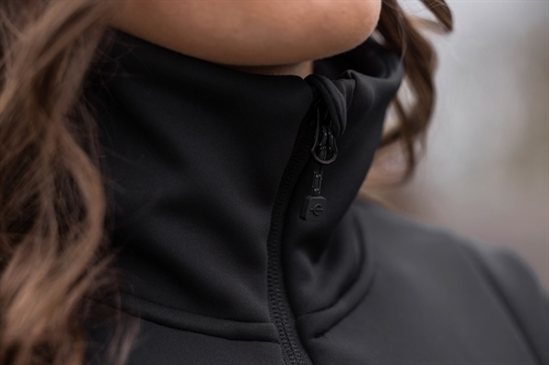 Sporty trøje med lynlås og et feminint, figursyet snit. Det sporty materiale sikrer en behagelig pasform, hvilket gør den ideel til stalden, træningen eller til hverdag.