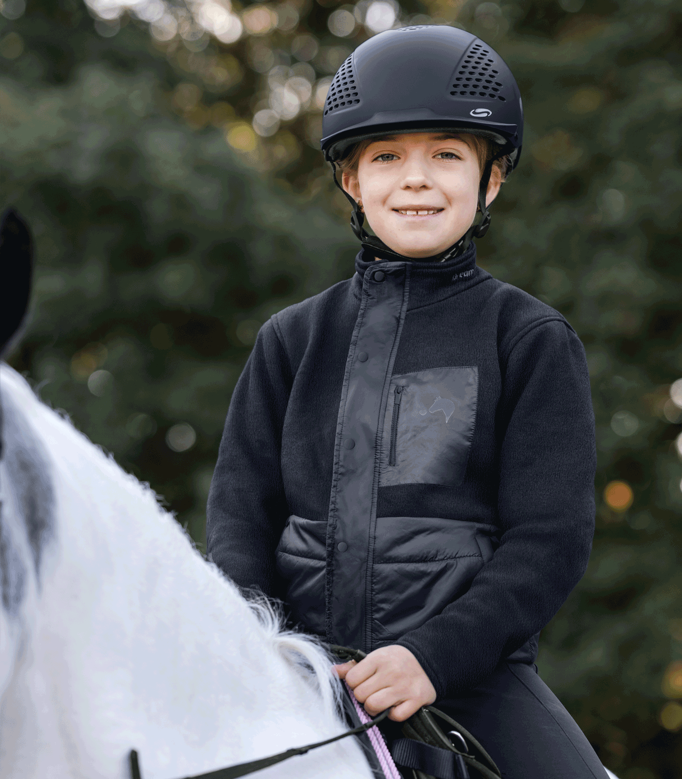 - Lækkert, blødt fleecemateriale øverst foran, øverst bagpå, krave og ærmer