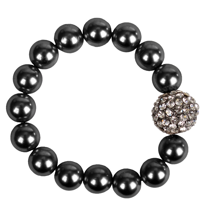 Hårelastik med sorte perle, og en sølv perle med sten