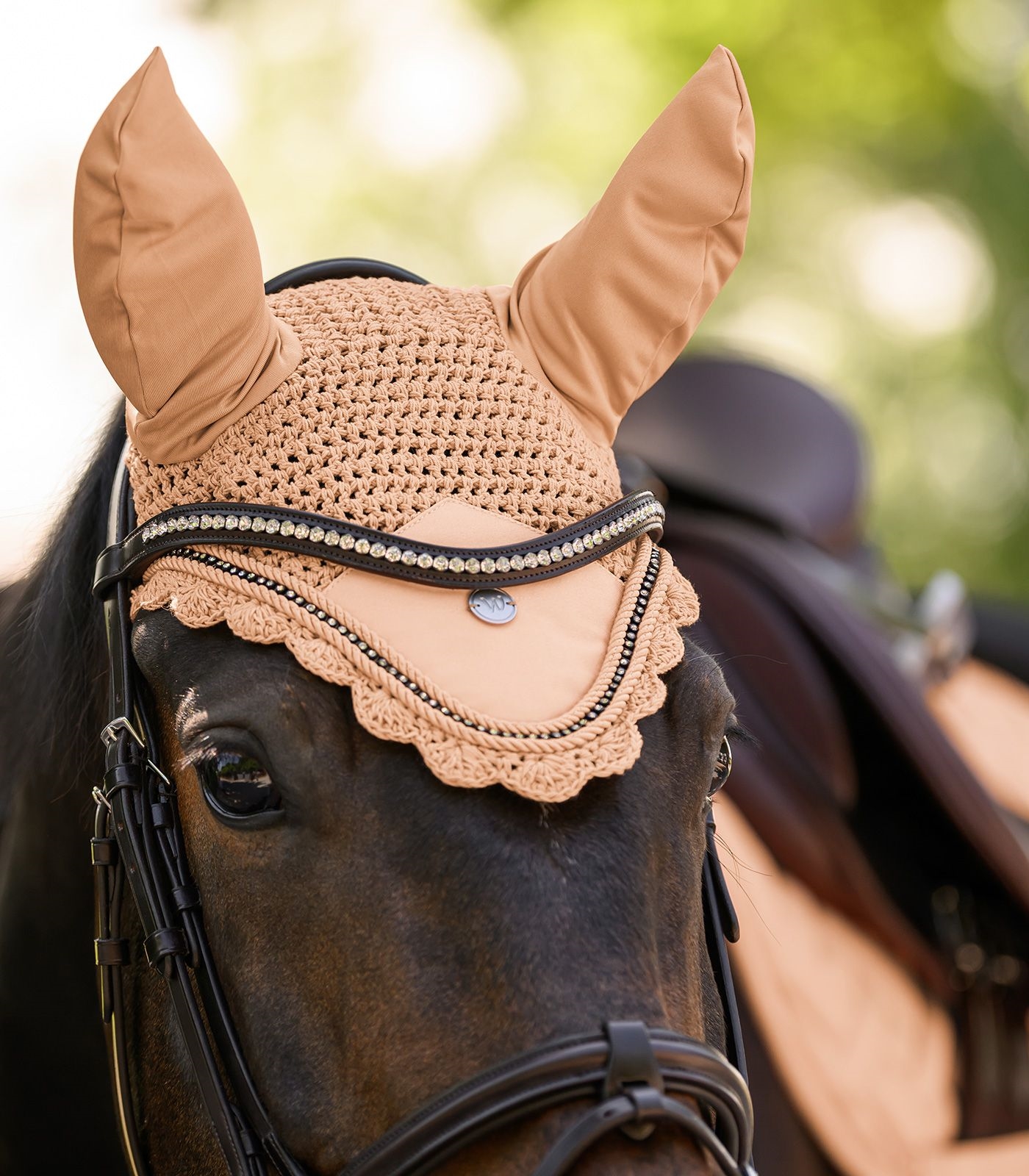 Det elastiske materiale i øreområdet sikrer en perfekt pasform på hestens hoved.