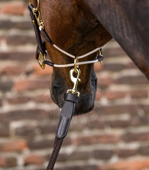 Højkvalitets lædergrime med anatomisk formet nakkestykke, justerbart på begge sider.