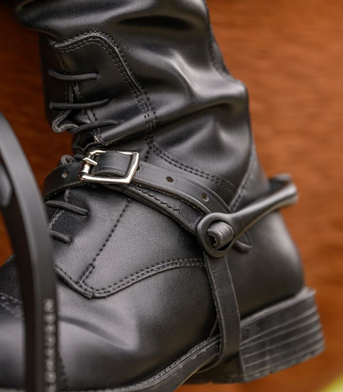 Læder sporeremme med rustfrie stålspænder.